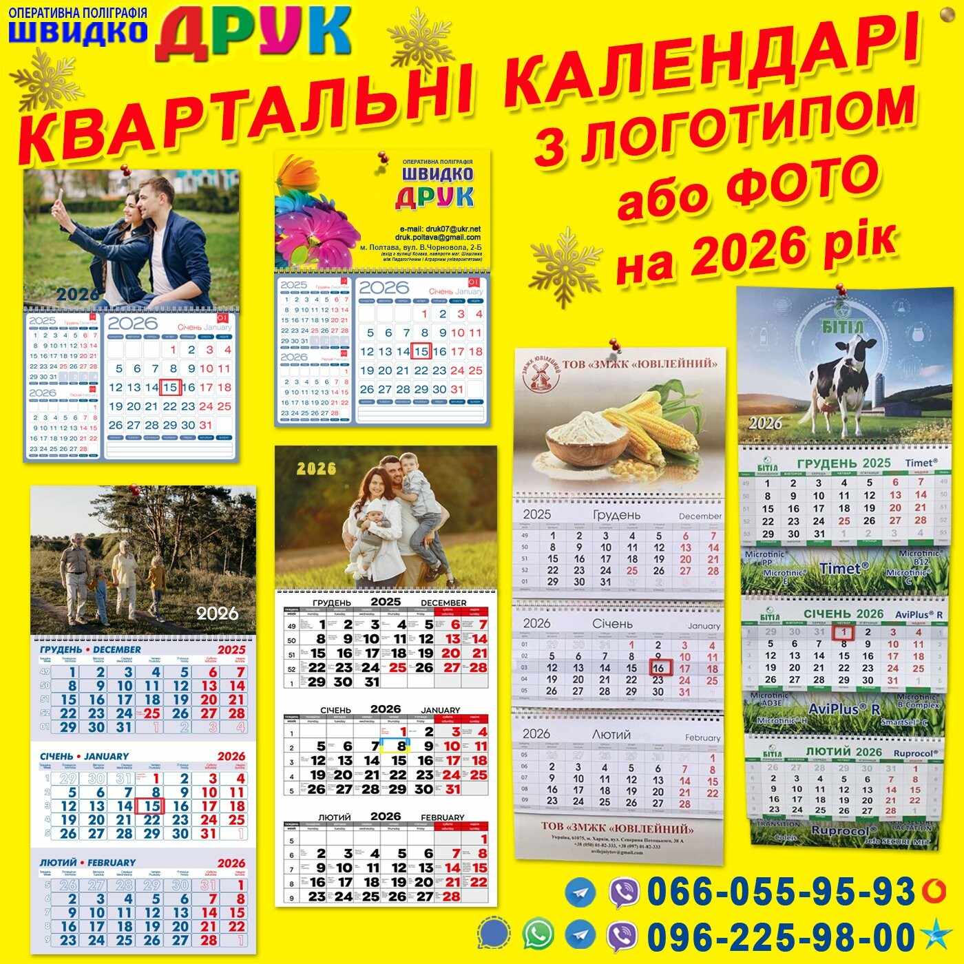 Ми пропонуємо виготовлення календарів різних форматів з Вашим фото чи логотипом компанії: квартальні плакатні (від А4 до А0) перекидні ...